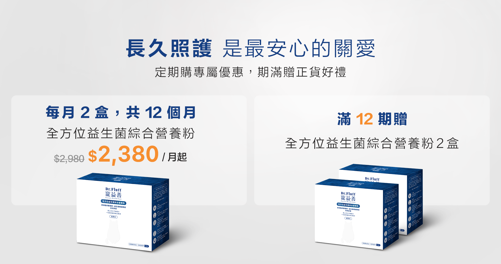▲ 定期購商品:每期 30 天,一期寄送 2 盒,滿 12 期額外加贈 2 盒(每月固定扣款 $2,380)。